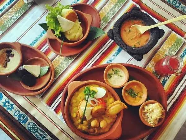 Fanesca is a delicious Ecuadorian soup that has fresh grains and dried fish, specifically, cod. Given the variety of grains that exist in Andes, fanesca is prepared with 12 types of grains, in honor of the Twelve Apostles. Some of the fresh grains that are used to prepare this delicious dish are peas, corn, beans, chochos (Andean Lupin), lentils, mote, mellocos, among others.